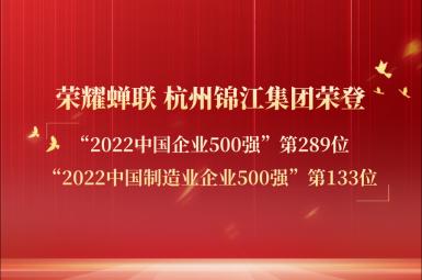 荣耀蝉联 杭州锦江集团荣登 “2022中国企业500强”第289位 “2022中国制造业企业500强”第133位 2022年9月6日上午,中国企..