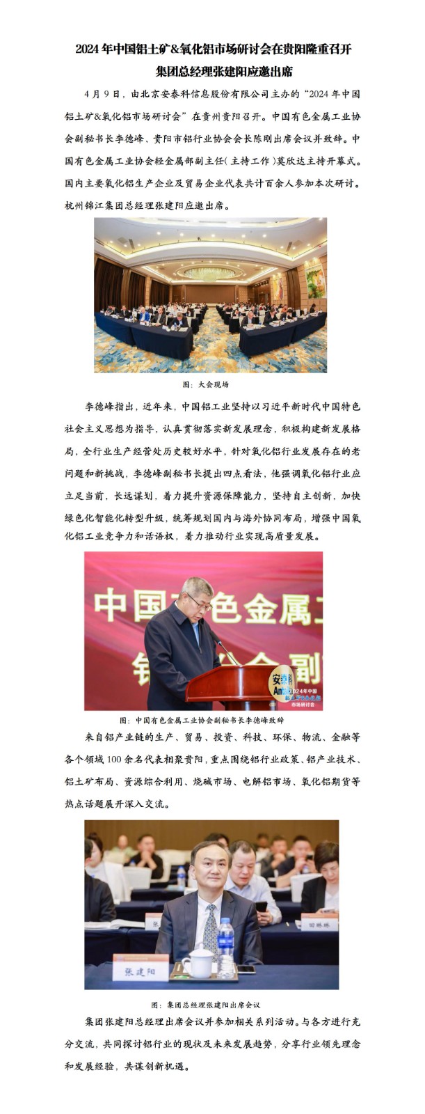 2024年中国铝土矿&氧化铝市场研讨会在贵阳隆重召开 集团总经理张建阳应邀出席